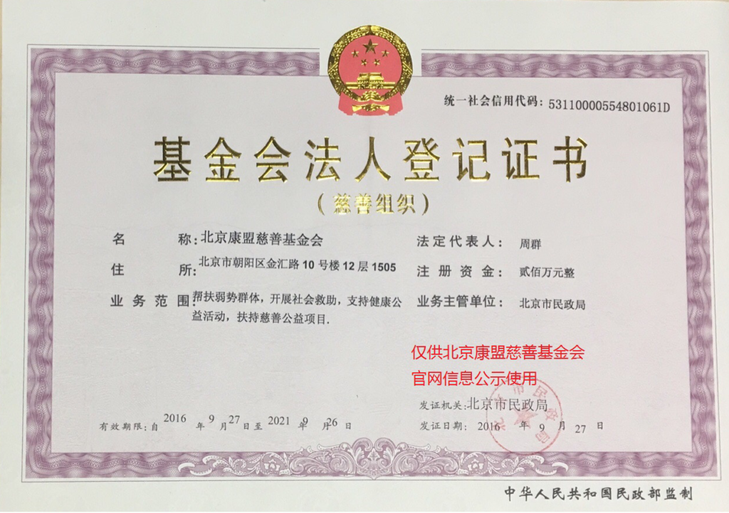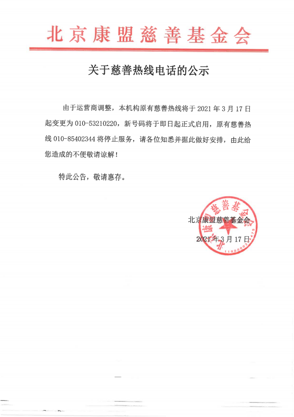 特别说明:北京康盟慈善基金会依据《北京市财政局 北京市民政局关于在社会组织全面推进财政电子票据改革的通知》,2023年4月1日起不再开具纸质票据。