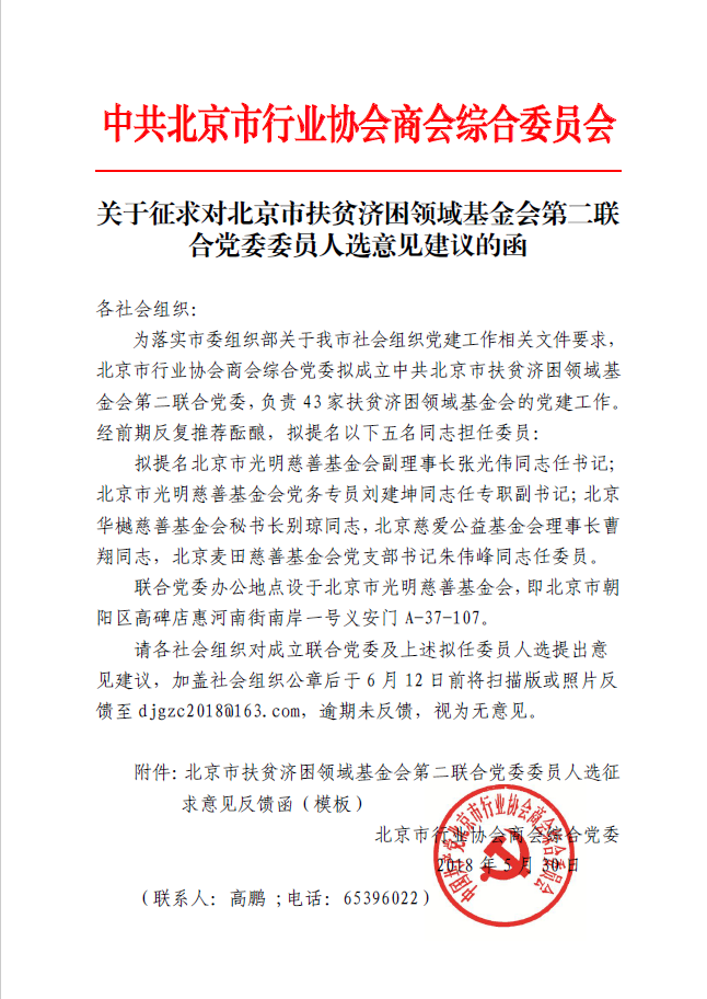 关于征求对北京市扶贫济困领域基金会第二联合党委委员人选意见建议的函