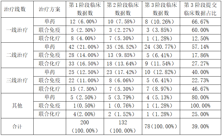 表4-2肠癌第1阶段三线治疗临床数据疗效评估