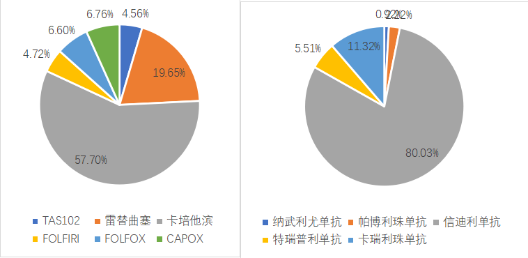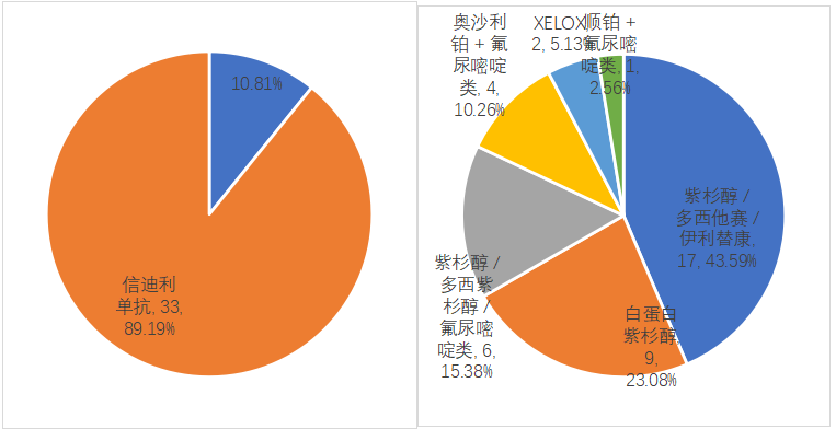 图3-7胃癌临床数据联合免疫(左)和联合化疗(右)药物情况分析