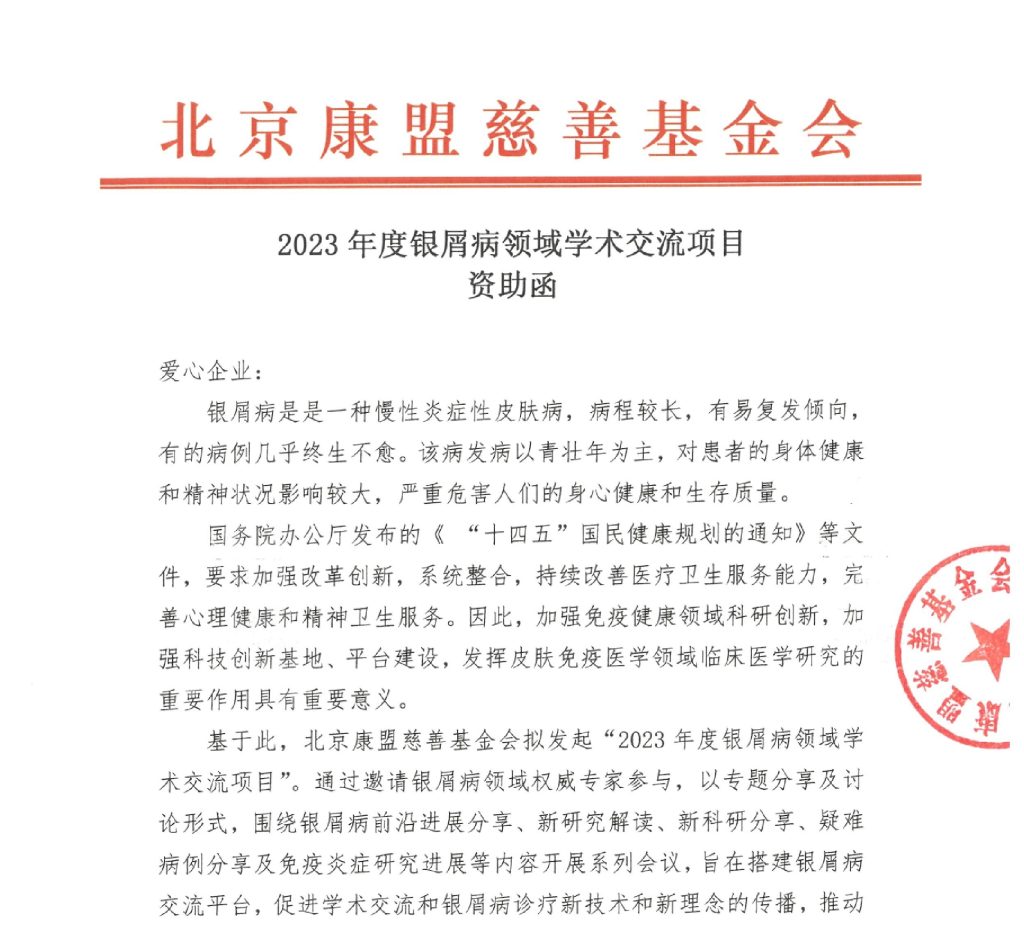 2023年度银屑病领域学术交流项目资助函及会议通知